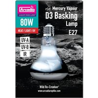 De Arcadia 2nd Generation Mini D3 UV Basking lamp 80W is een krachtige all-in-one kwikdamplamp, speciaal ontworpen voor dagactieve, zonminnende reptielen. Deze lamp levert warmte, zichtbaar licht, UVA en UVB uit één enkele lichtbron, waardoor het een essentiële component is voor het creëren van een UV-rijke zonneplek in het terrarium. Met een geïntegreerde reflector en een vermogen van 80W biedt deze lamp een stabiele baskingzone die bijdraagt aan de gezondheid en vitaliteit van je dieren.
